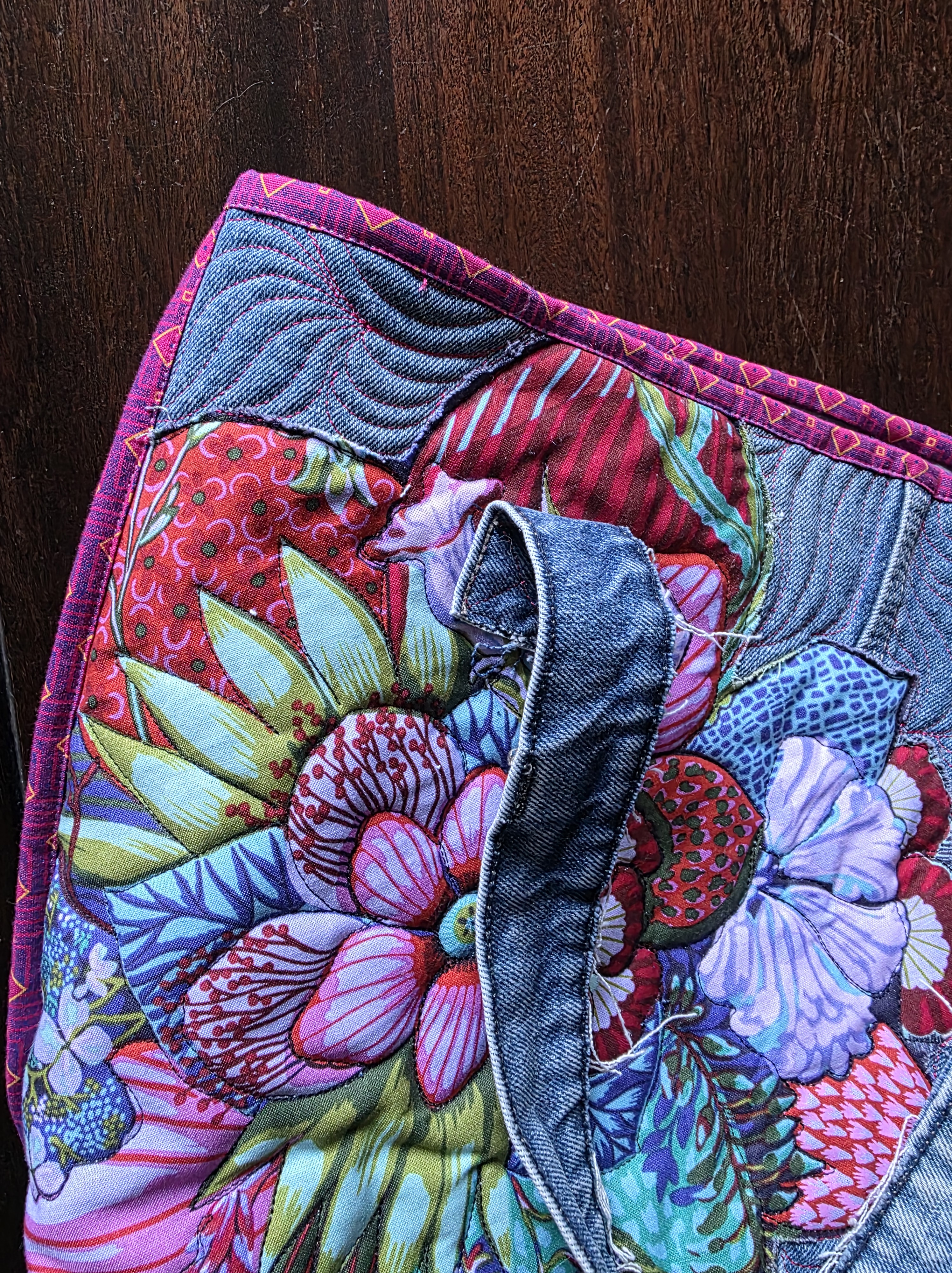 Everybody has an old pair of jeans or two in the cupboard. Maybe they don’t fit anymore or maybe they are stained. Upcycling is a wonderful way to create a new item or gift without having to buy a lot of new fabrics. Students will upcycle a pair of jeans to make a useful tote bag with fun free range raw-edge applique and freemotion quilting all in one on the longarm machine. Once done, students only have to close up the sides and finish the top edge with binding. Great gifts and usable items that can be personalized without breaking the bank. Join Telene for this fun “let your hair down” class. You will be making this bag on your machine in your studio as Telene provides instruction.
